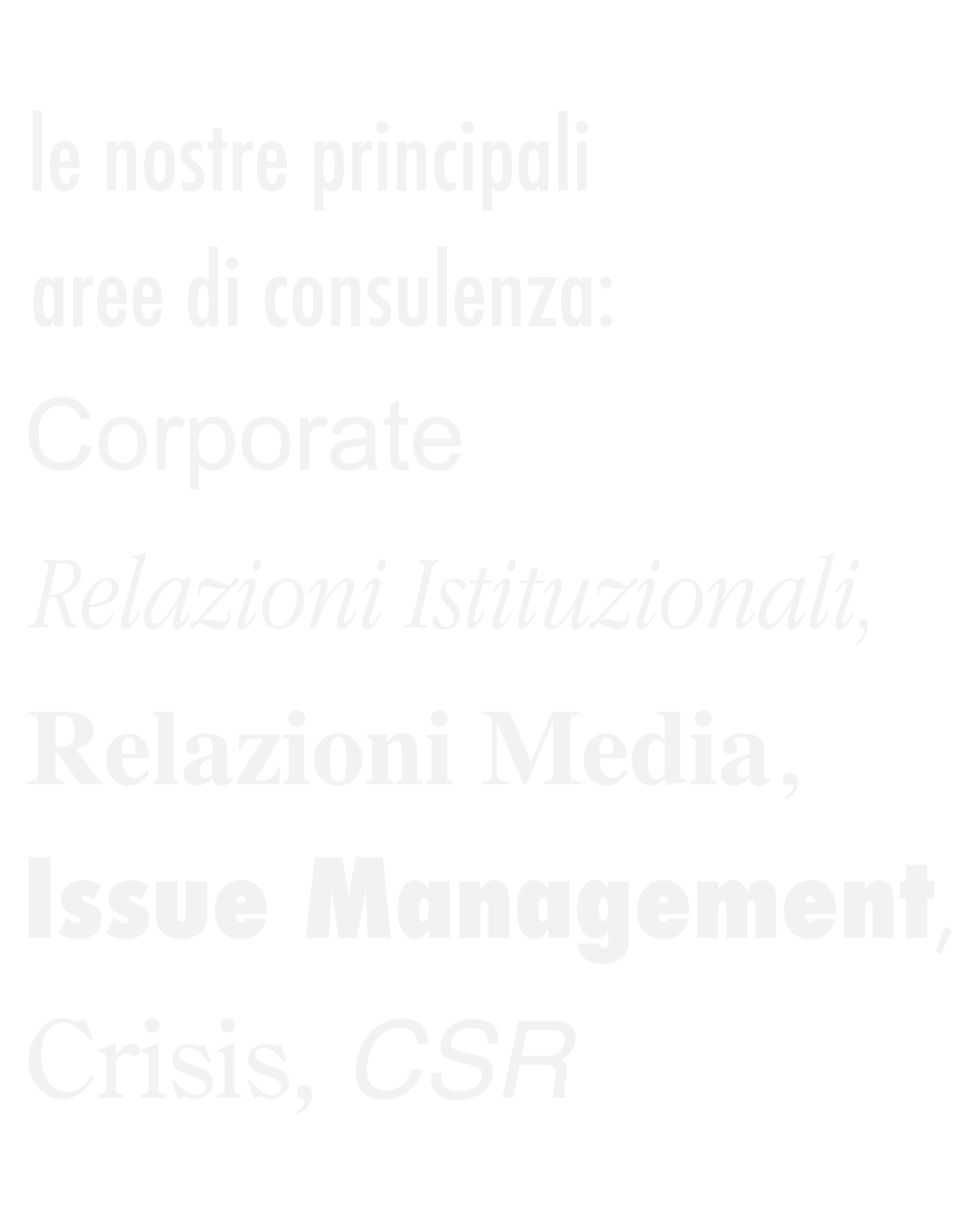 Creiamo e gestiamo percorsi di comunicazione e relazioni istituzionali finalizzati alla costruzione del consenso, attraverso un lavoro meticoloso di engagement degli stakeholder che poggia su un sistema relazionale capillare e fiduciario.